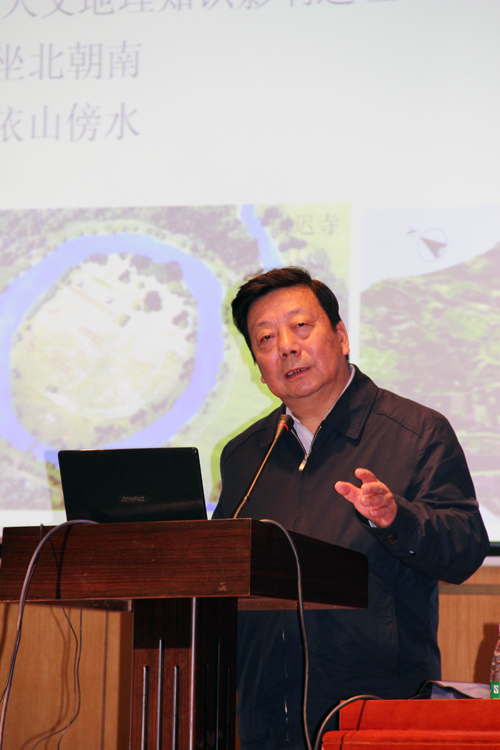 11月2日,陆勤毅院长出席大会开幕式并做重要讲话。他分析了淮河文化目前的研究状况和今后需要进一步深入研究的几个方向,并做了题为《安徽先秦时期建城的科技因素》的学术演讲。演讲通过图文并茂的形式,结合文献和考古资料,就先秦时期大型聚落和城市的选址、围壕和城墙建筑技术、城内建筑技术、给排水技术四个方面展开了深入论述,受到了与会专家的高度评价。