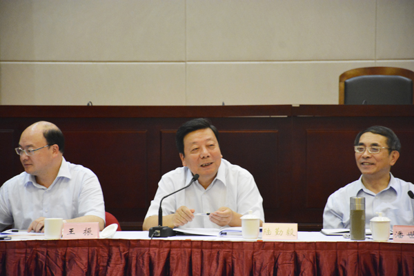 6月30日,长三角联合研究中心2014年工作会议在上海顺利召开,上海、江苏、浙江和安徽四地社会科学院主要领导、长三角问题研究专家、科研管理部门负责人等四十多人参加了会议,与会者围绕“新形势下如何加快长三角一体化发展”进行了专题研讨,并专门研究了“如何建立长三角联合研究的工作机制”。上海社科院党委书记潘世伟主持会议。安徽省委宣传部副部长、我院党组书记、院长陆勤毅,上海社科院院长王战,江苏社科院院长王庆五、浙江社科院党委书记张伟斌等发表重要讲话。我院副院长杨俊龙就如何完善“长三角联合研究中心”运行机制提出了可行性方案。我院科研管理部门和相关研究所负责人参加会议。