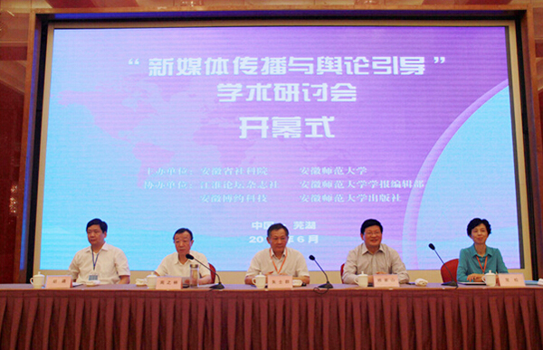 由我院和安徽师范大学联合主办、安徽社会科学院新闻与传播研究所和安徽师范大学新闻与传播学院承办的“新媒体传播与舆论引导”学术研讨会于6月13-14日在芜湖召开。来自复旦大学、中国科学技术大学、合肥工业大学、上海大学、郑州大学、安徽大学等多所省内外高校和省社会科学院、天津社会科学院舆情研究所、人民网等单位的40余名专家学者参加了研讨会。