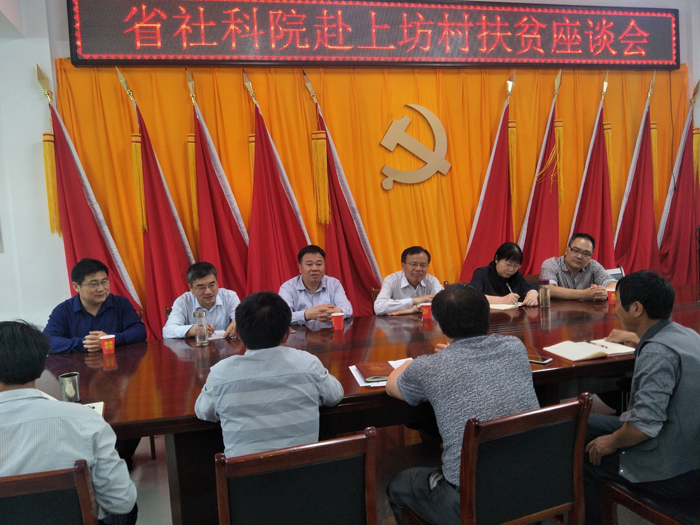 在独山村和上坊村,曾凡银一行先后与乡镇党委班子、村两委、驻村工作队负责同志亲切座谈,听取镇村两级脱贫攻坚情况汇报,了解两个村脱贫攻坚取得的成效和存在的困难。曾凡银充分肯定了两个村精准扶贫工作,勉励大家再接再厉,在接受国家脱贫国家级检阅过程中拿出一份漂亮的答卷。同时,他指出,要落实好政策,持续加大对贫困人口和边缘贫困人口的扶持力度,巩固脱贫成效。他强调,要按照乡村振兴“产业兴旺、生态宜居、乡风文明、治理有效、生活富裕”的总要求,结合两个贫困村自然生态发展现状和产业发展现状,精准施策,因地制宜选择产业扶贫项目。他表示,社科院将一如既往支持两个村的脱贫攻坚工作,结合社科院优势,将扶贫与扶志、扶智相结合,激发村民脱贫的内生动力。他勉励镇村两级干部和我院驻村工作队的同志,扑下身子、沉到村子,扎实埋头苦干实干,紧扣农民群众最关心最直接最现实的利益问题,努力找到破解难题的办法和路径,坚决打赢打好脱贫攻坚战。