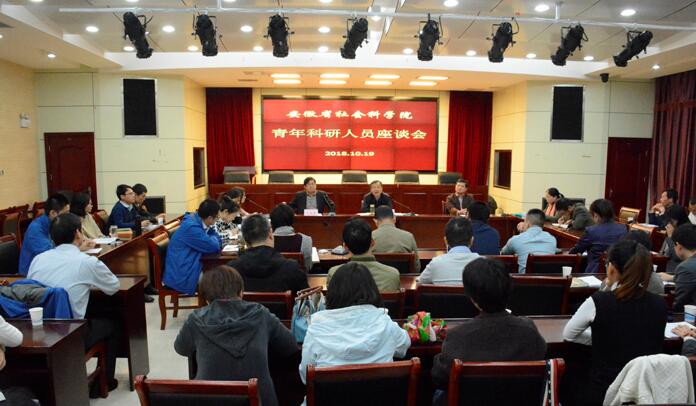 10月19日上午,我院青年科研人员座谈会在院学术报告厅举行。院属各单位青年科研人员共40余人参加会议。院党组书记、院长曾凡银教授出席会议并讲话。院党组成员、副院长施立业研究员出席会议。院党组成员、《江淮论坛》主编沈跃春研究员主持会议。
