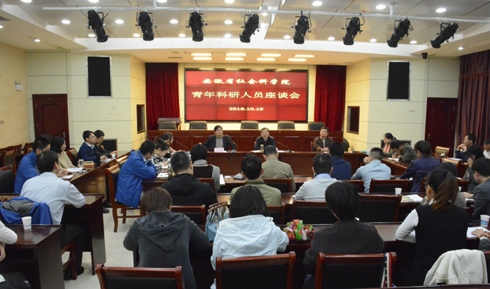 10月19日上午,我院青年科研人员座谈会在院学术报告厅举行。院属各单位青年科研人员共40余人参加会议。院党组书记、院长曾凡银教授出席会议并讲话。院党组成员、副院长施立业研究员出席会议。院党组成员、《江淮论坛》主编沈跃春研究员主持会议。