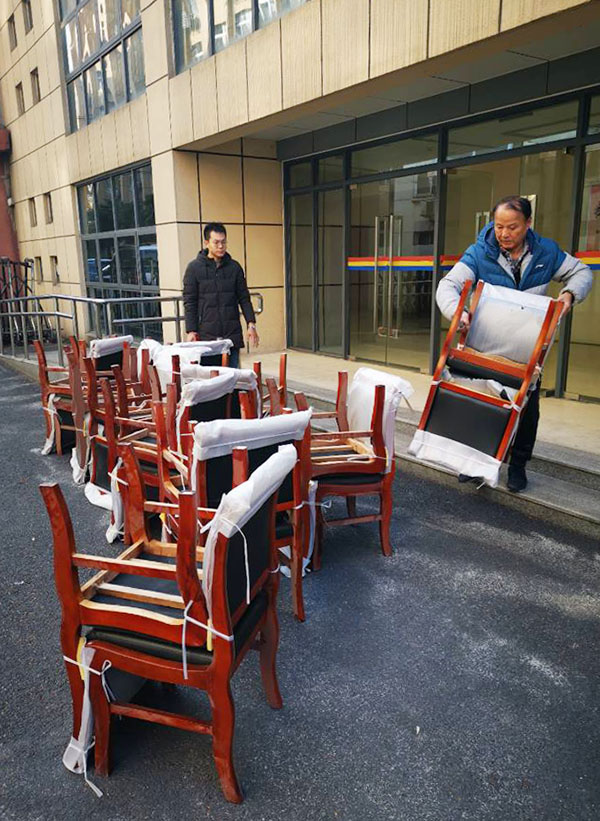 为改善院三楼会议室使用条件,我院决定将在学术报告厅长期闲置的约40余把椅子搬至三楼会议室。12月31日上班伊始,院办公室王烁,科研处鞠洪斌、李双全,人事处叶信进,财务处周多胜、刘洋,机关党委盛钧俣、机关服务中心李海、王峰和经济所叶刚华等青年志愿者主动请缨,冒着严寒,手挟肩扛,将这些椅子从图书馆学术报告厅搬到三楼会议室。由于椅子长期闲置落了很多灰尘,大家没有顾忌弄脏衣服,一鼓作气将椅子搬到指定位置、展现了青年志愿者团结出力量的良好形象。大家表示,将闲置的桌椅利用起来,既节约了办公经费,又释放出学术报告厅的空间,而且优化了会议室使用环境,是件一举多得的好事。