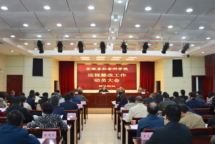 4月21日上午,我院召开深化“三个以案”警示教育暨巡视整改动员会,党组书记、院长曾凡银作动员讲话,党组成员、副院长沈天鹰传达中纪委十九届四次全会和省纪委十届五次全会精神,党组成员、《江淮论坛》主编沈跃春传达省直机关党的工作暨纪检工作会议精神,党组成员、副院长杨俊龙主持会议并通报了《院党组落实省委巡视反馈意见的整改方案》和《深化“三个以案”警示教育工作方案》,全院副处以上干部和全体党员参加会议。