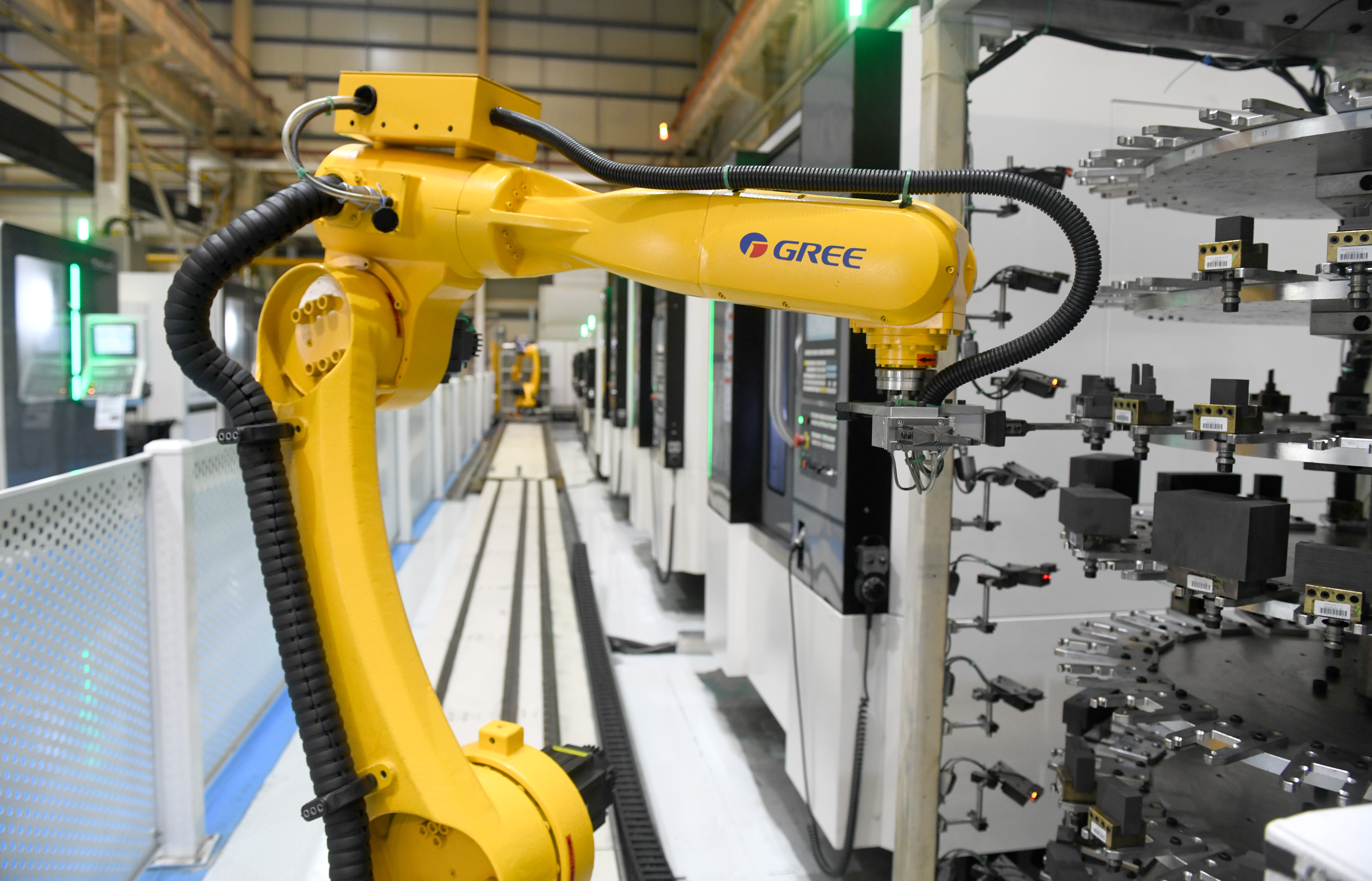 在珠海格力的全自动化生产车间,冲压、车身、涂装各类机器人忙个不停,整条生产线从工业设计到工业装备已经实现了100%自主研发、自主生产。