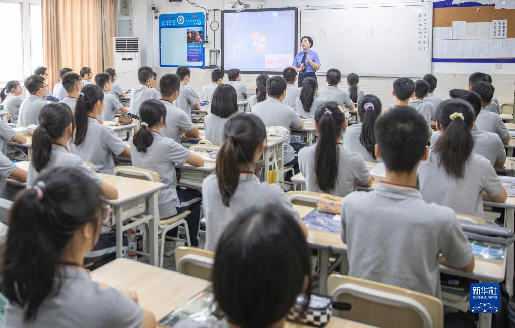 9月20日,在重庆市第三十七中学,梅玫为学生开展“莎姐”课堂讲座。新华社记者 黄伟 摄